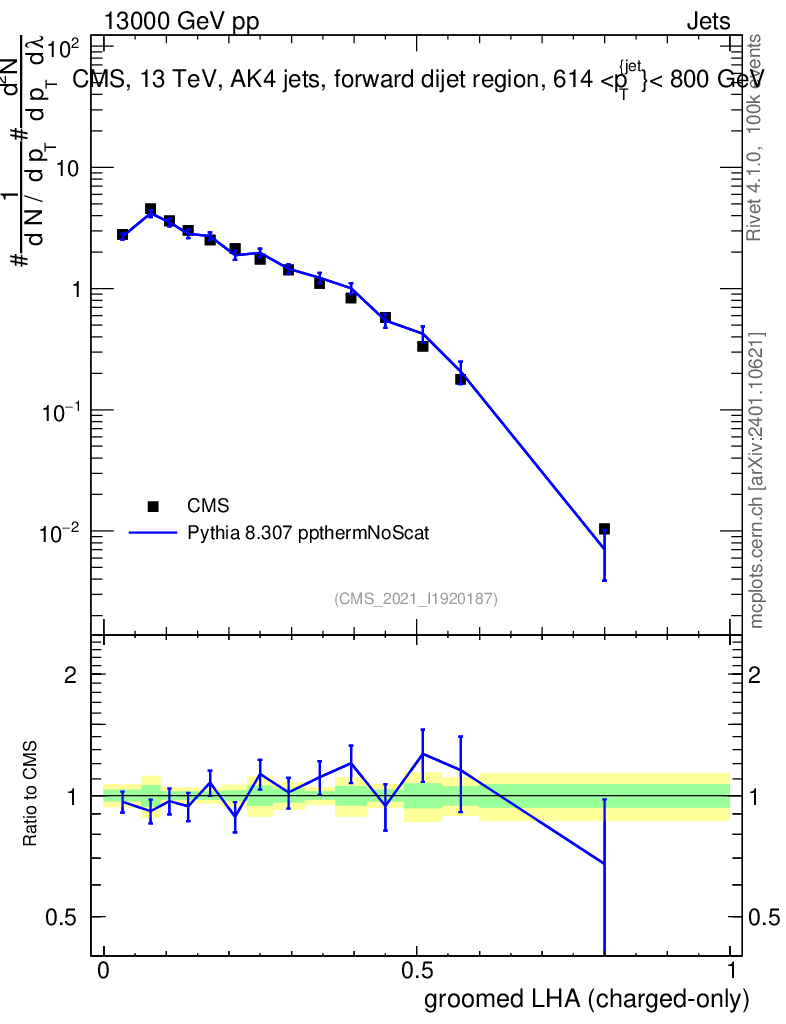 Lines: data, pythia8 8.307 ppthermNoScat |