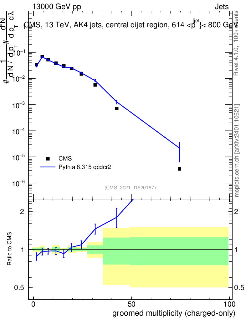 Lines: data, pythia8 8.315 qcdcr2 |