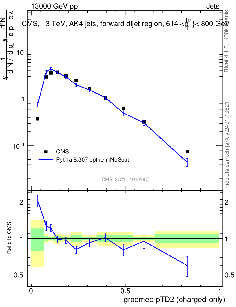 Lines: data, pythia8 8.307 ppthermNoScat |
