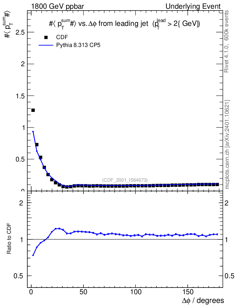 Plot of sumpt-vs-dphi in 1800 GeV ppbar collisions