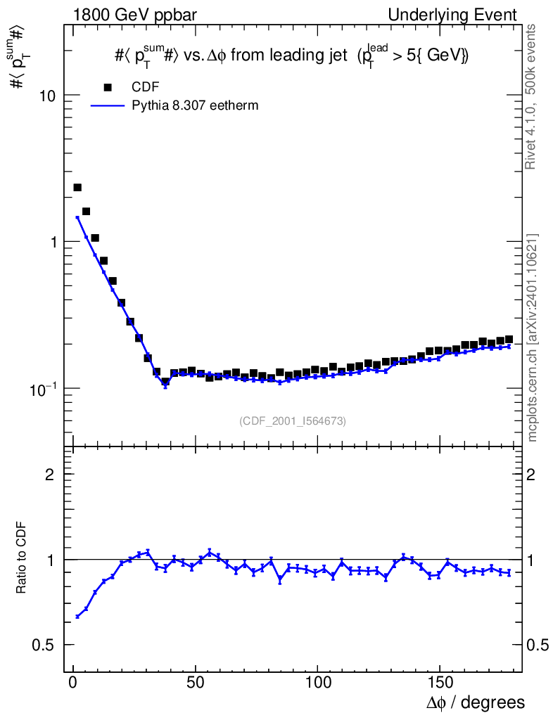 Lines: data, pythia8 8.307 eetherm |