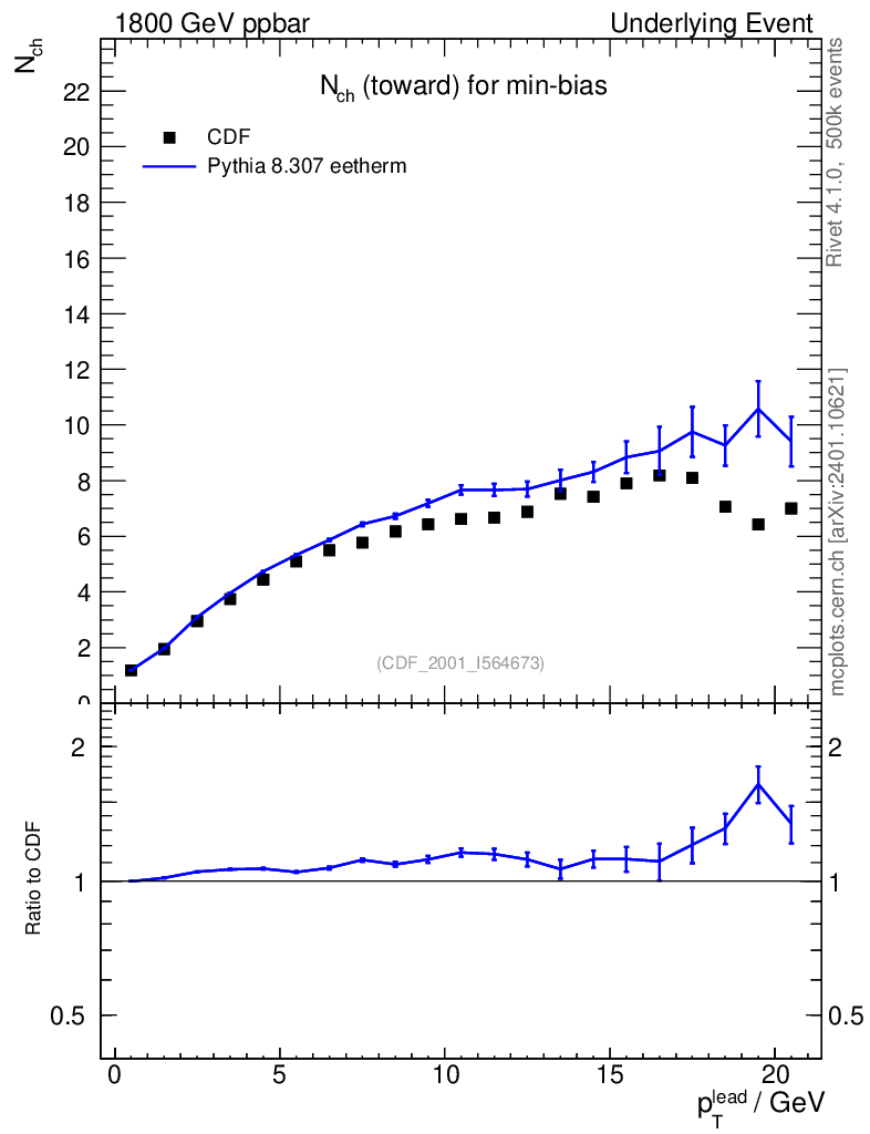Lines: data, pythia8 8.307 eetherm |