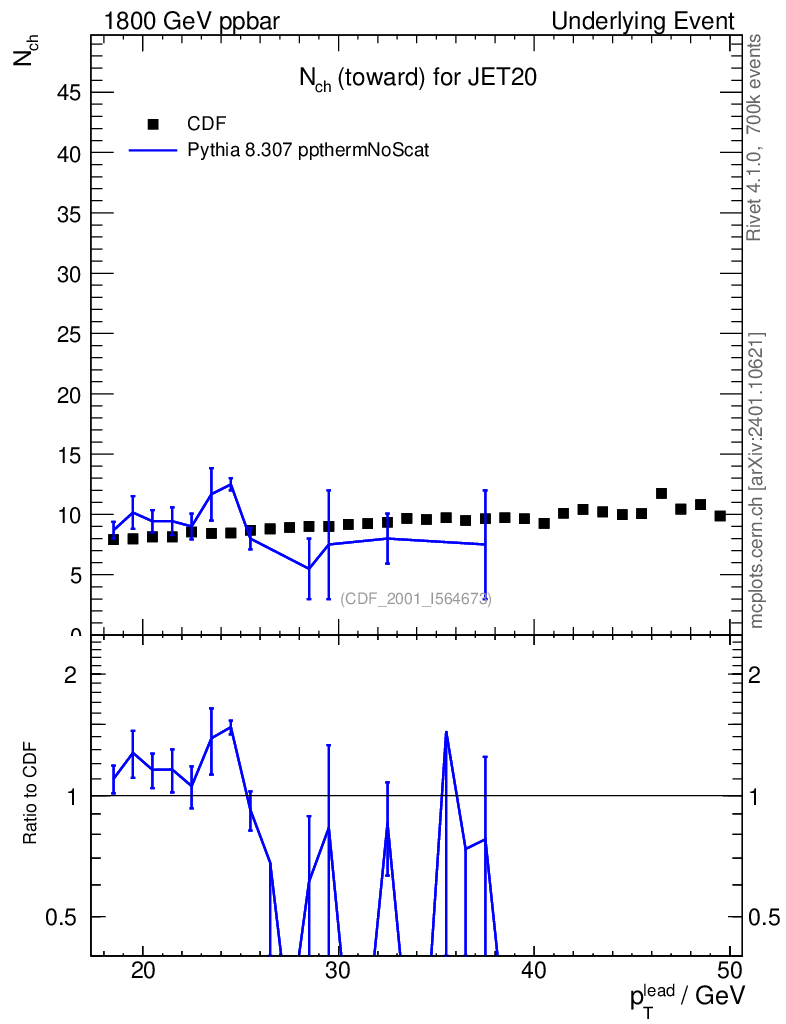 Lines: data, pythia8 8.307 ppthermNoScat |