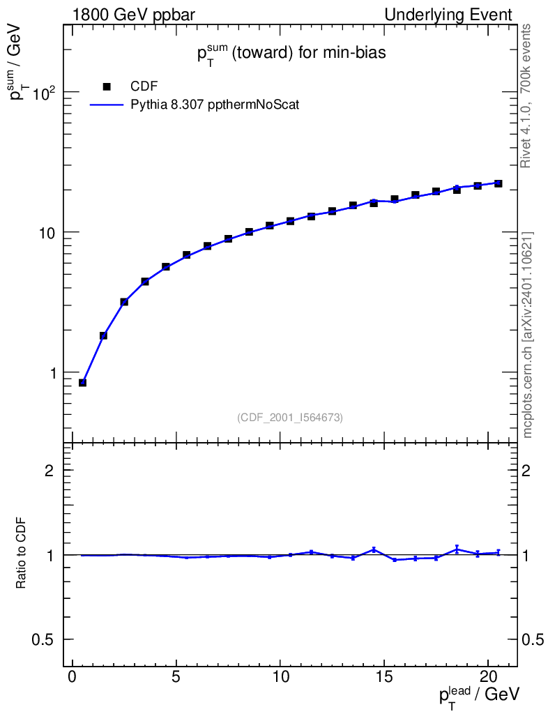 Lines: data, pythia8 8.307 ppthermNoScat |