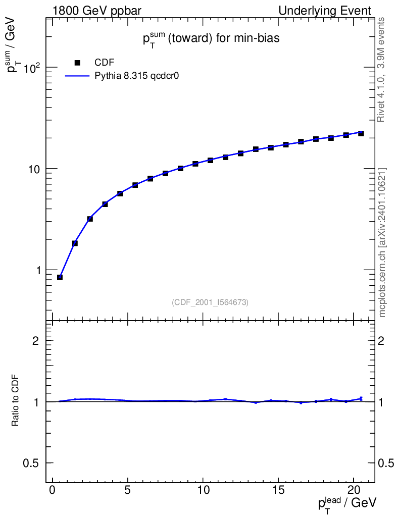 Lines: data, pythia8 8.315 qcdcr0 |