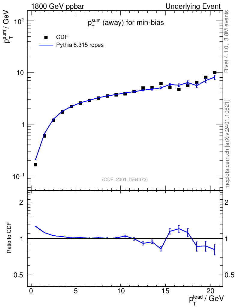 Lines: data, pythia8 8.315 ropes |