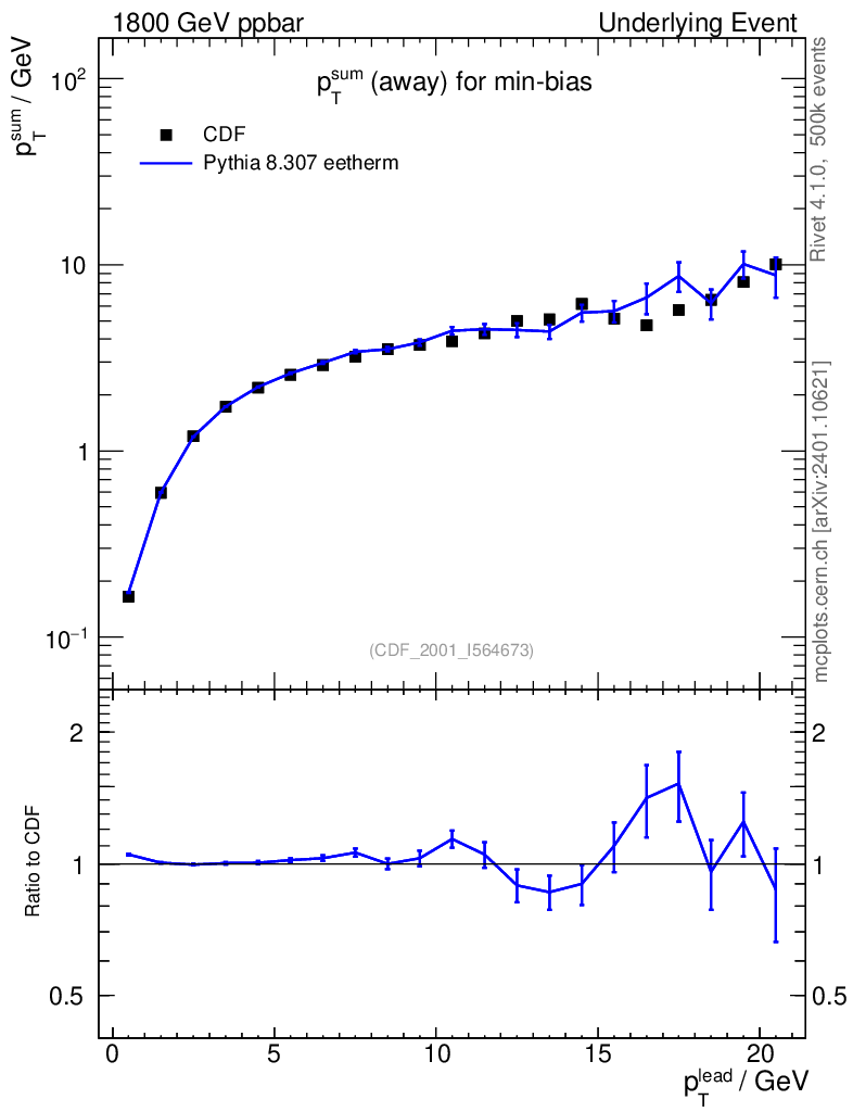 Lines: data, pythia8 8.307 eetherm | compare with other tunes