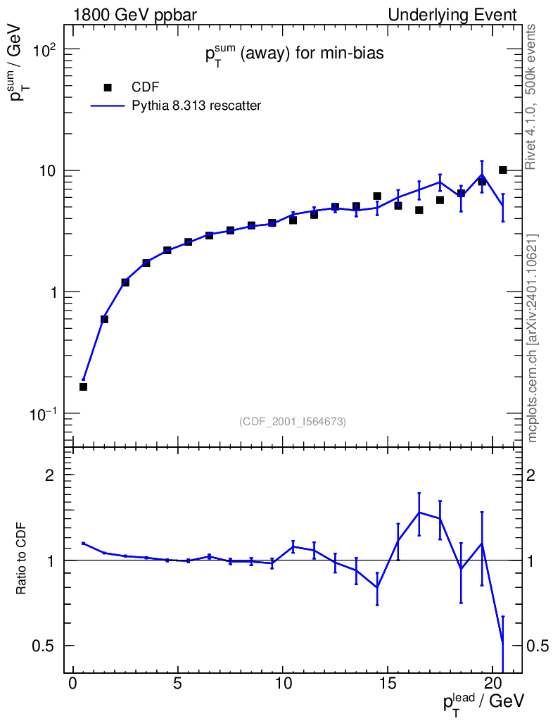 Lines: data, pythia8 8.313 rescatter |
