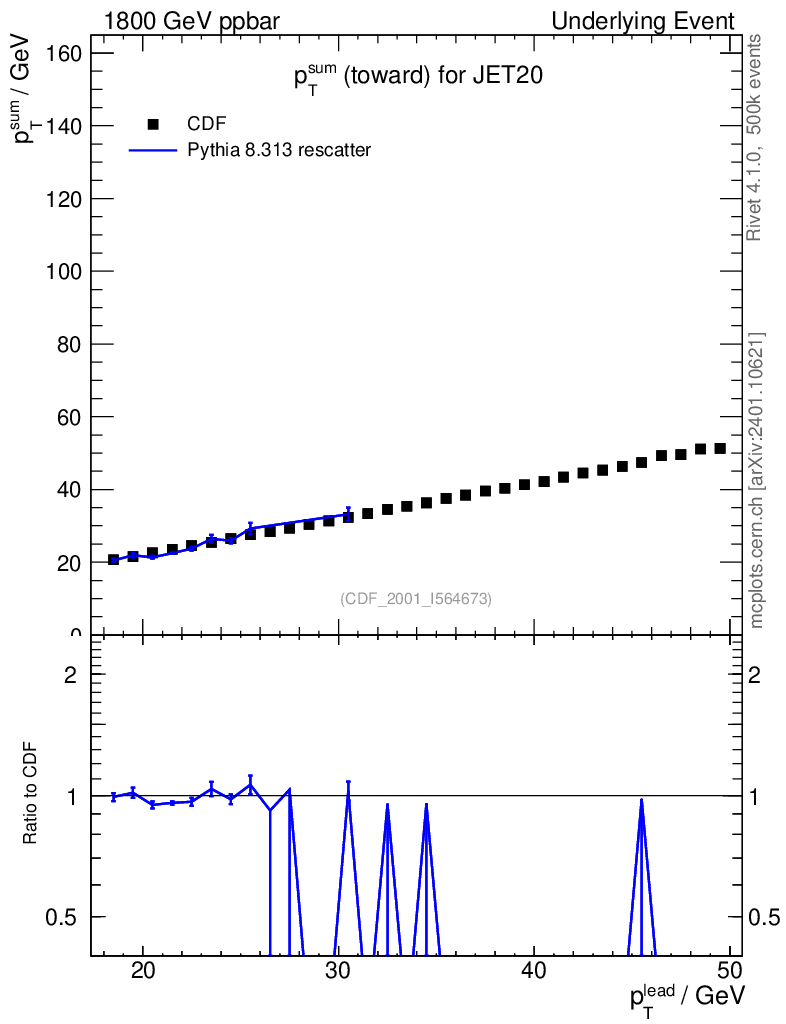 Lines: data, pythia8 8.313 rescatter |