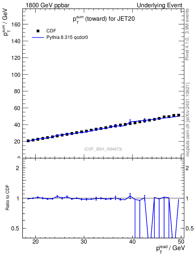Lines: data, pythia8 8.315 qcdcr0 |