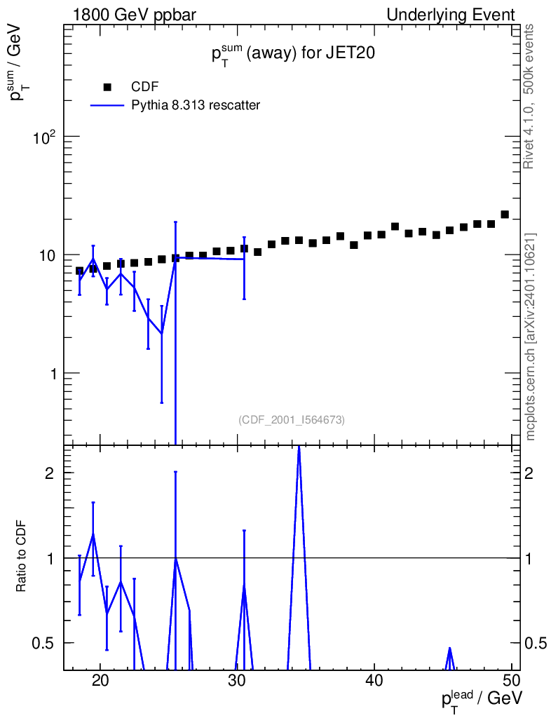 Lines: data, pythia8 8.313 rescatter |