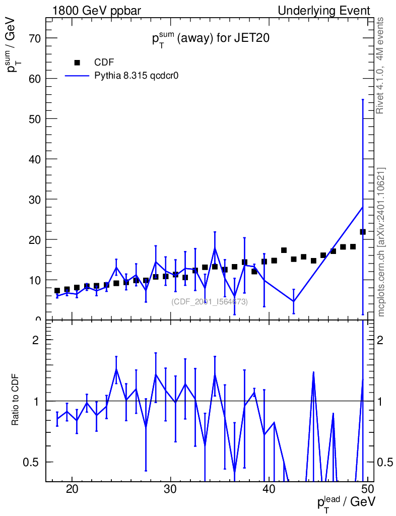 Lines: data, pythia8 8.315 qcdcr0 |