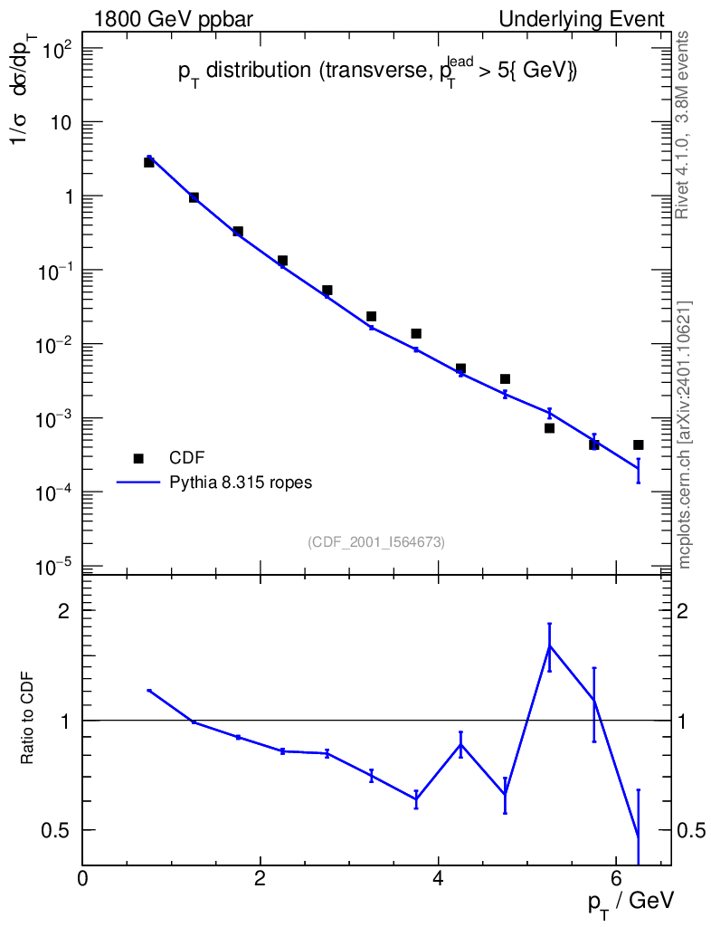 Lines: data, pythia8 8.315 ropes |