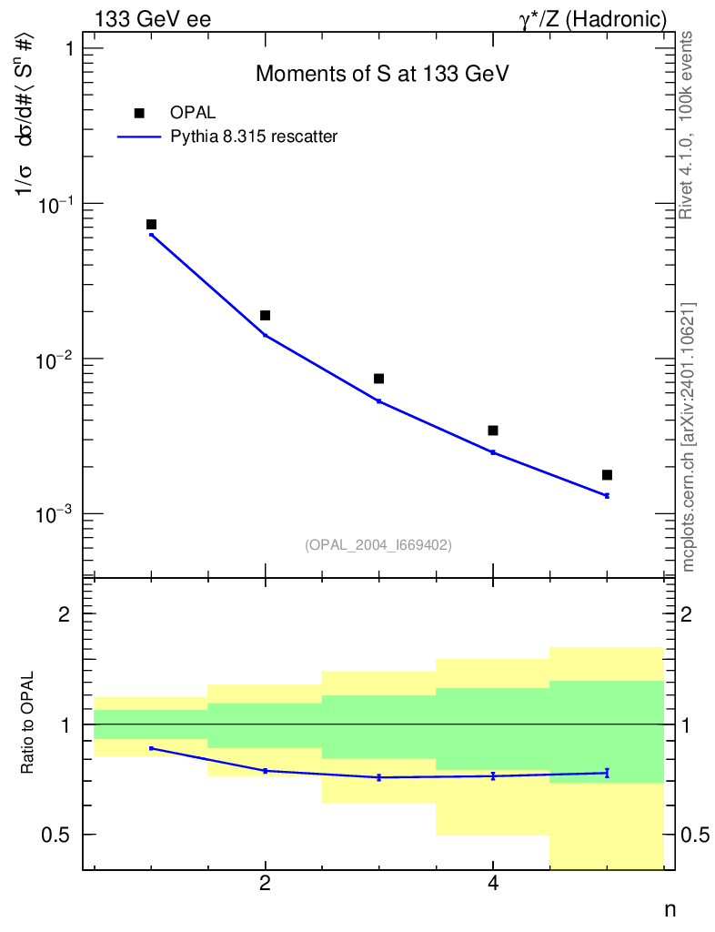 Lines: data, pythia8 8.315 rescatter |