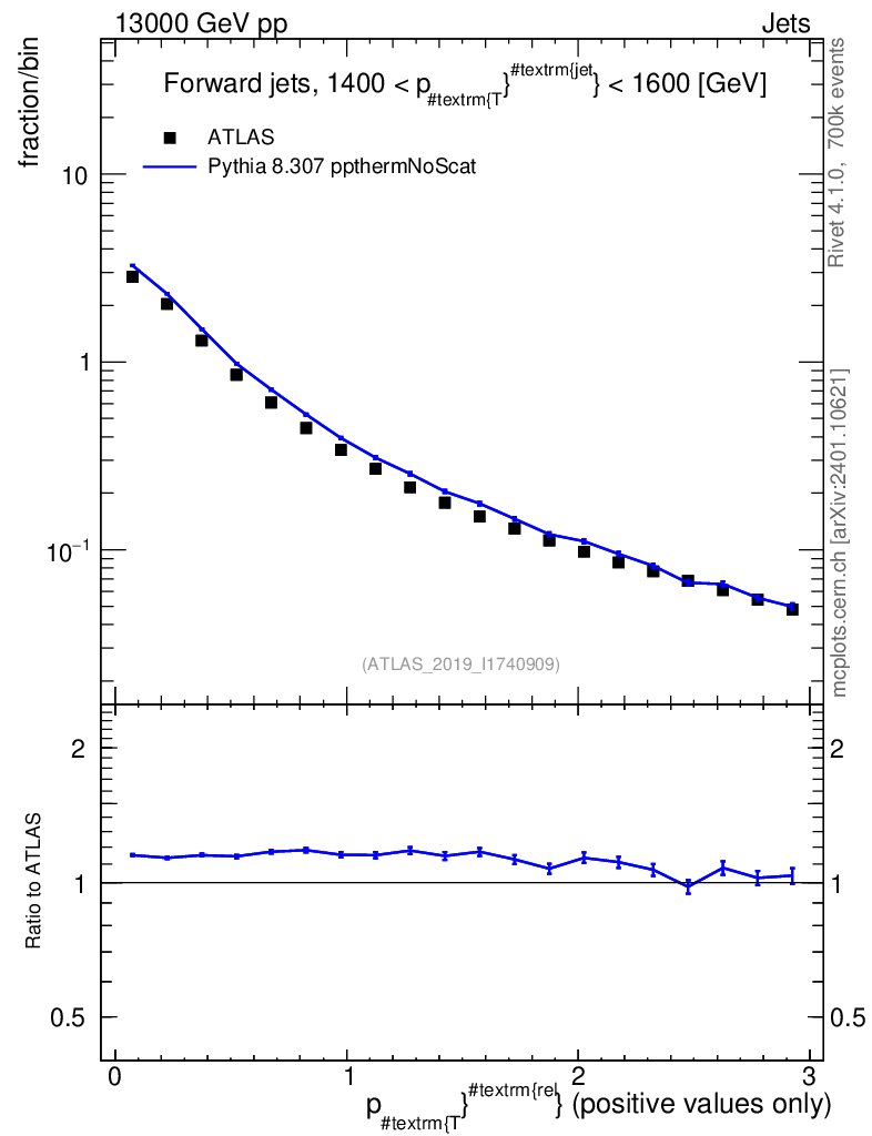 Lines: data, pythia8 8.307 ppthermNoScat |