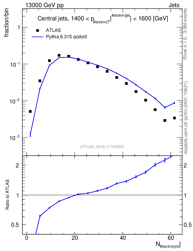 Lines: data, pythia8 8.315 qcdcr0 |