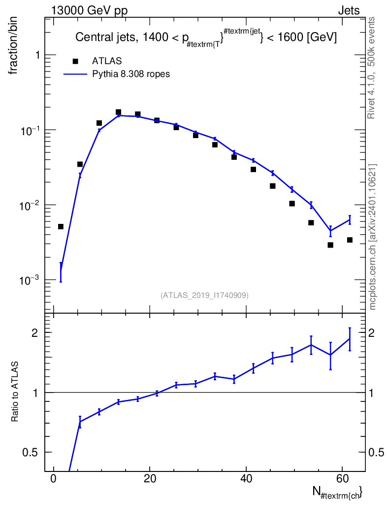 Lines: data, pythia8 8.308 ropes |
