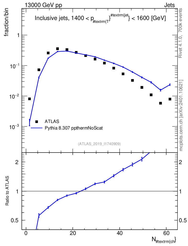Lines: data, pythia8 8.307 ppthermNoScat |