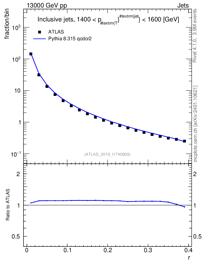 Lines: data, pythia8 8.315 qcdcr2 |