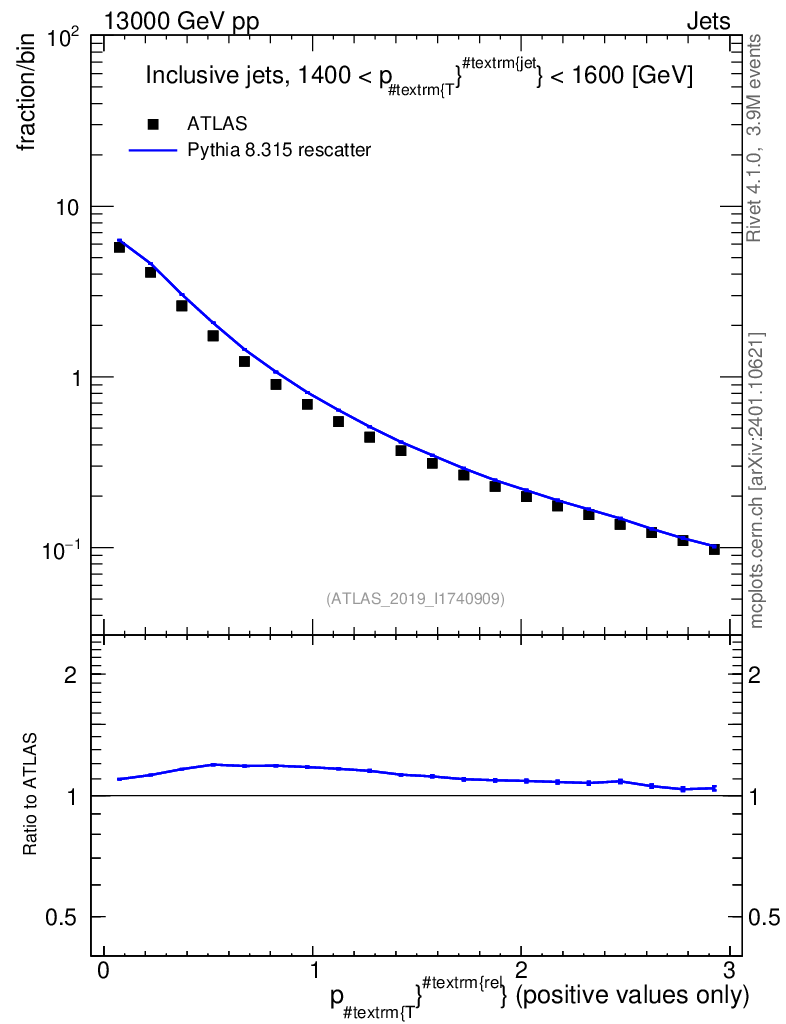 Lines: data, pythia8 8.315 rescatter |