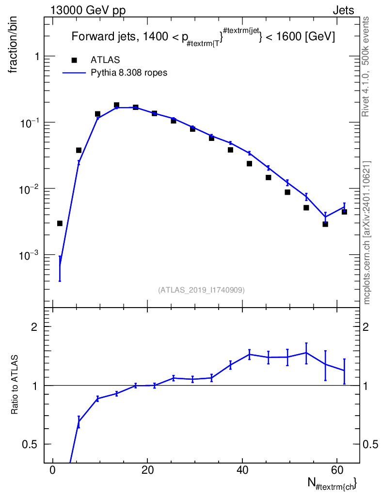 Lines: data, pythia8 8.308 ropes |