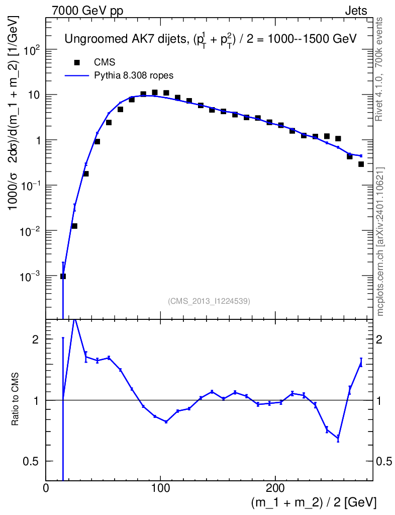 Lines: data, pythia8 8.308 ropes |