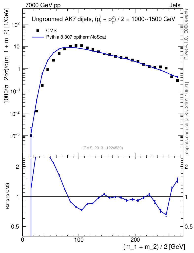 Lines: data, pythia8 8.307 ppthermNoScat |