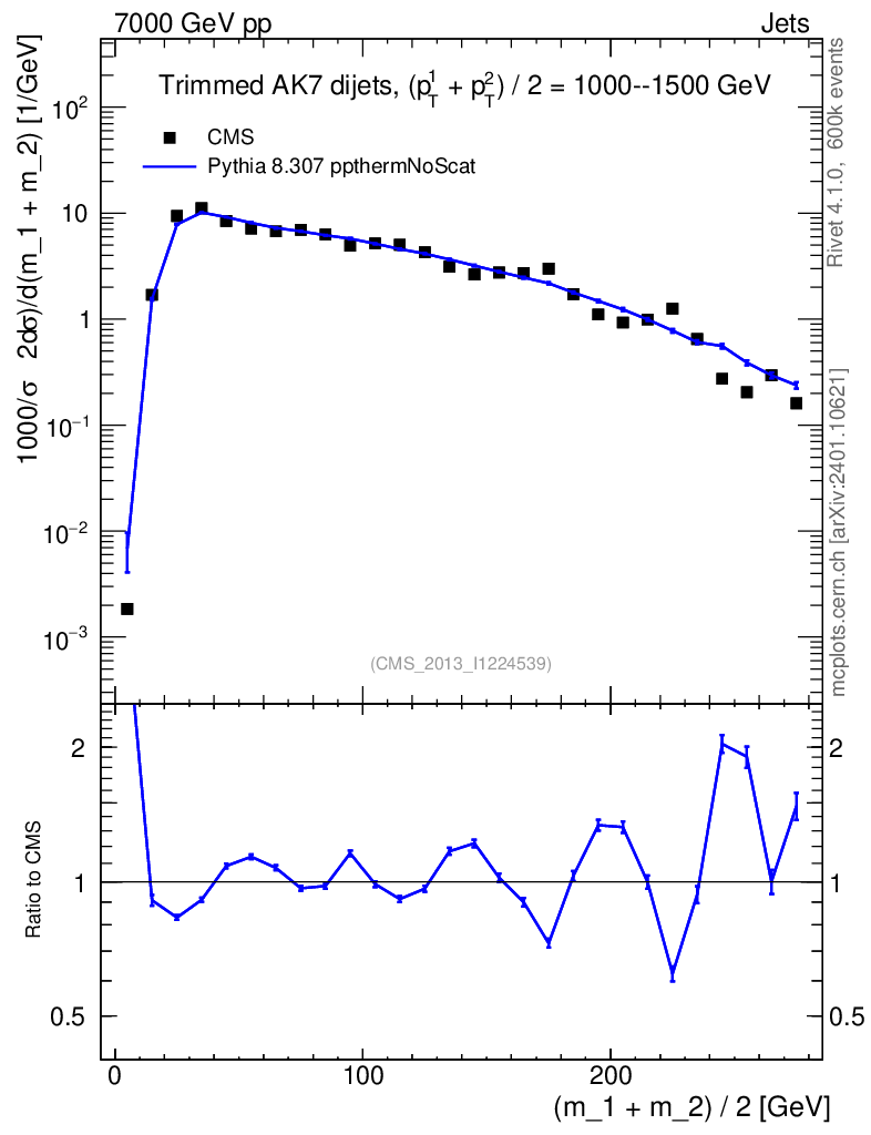 Lines: data, pythia8 8.307 ppthermNoScat |