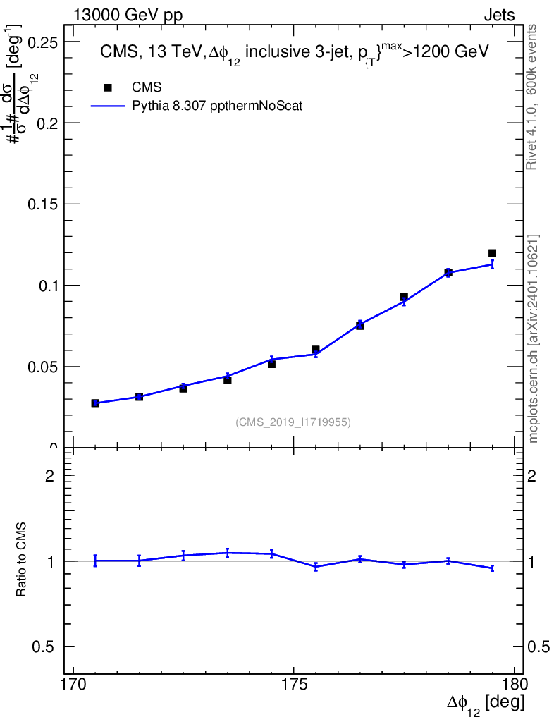 Lines: data, pythia8 8.307 ppthermNoScat |