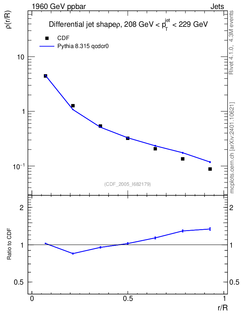 Lines: data, pythia8 8.315 qcdcr0 |