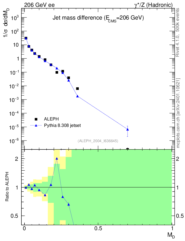 Lines: data, pythia8 8.308 jetset |