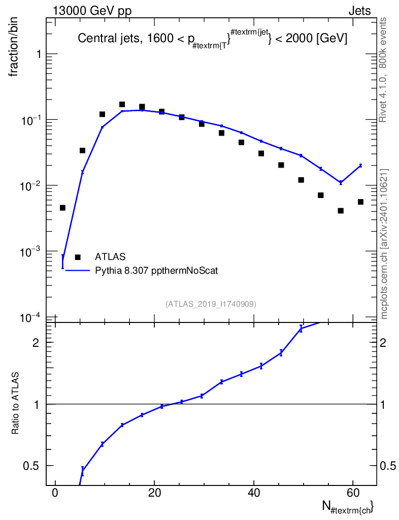 Lines: data, pythia8 8.307 ppthermNoScat |