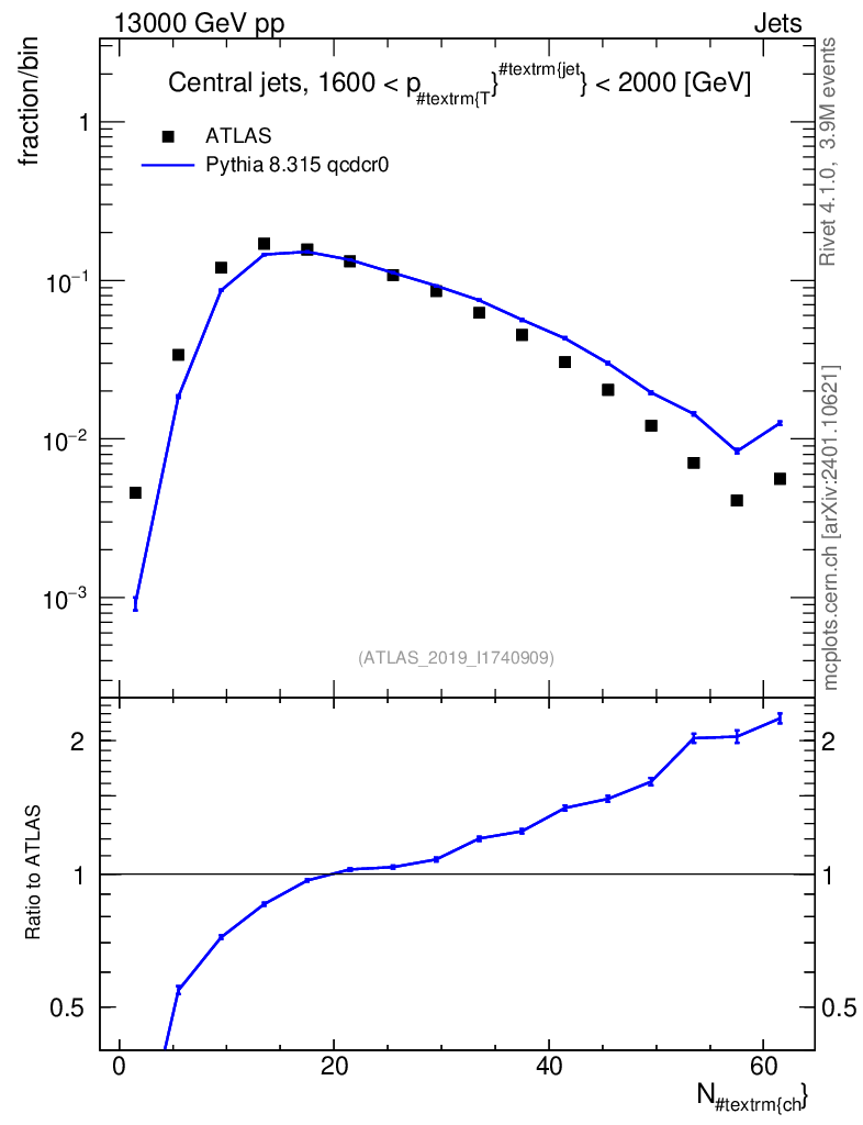 Lines: data, pythia8 8.315 qcdcr0 |