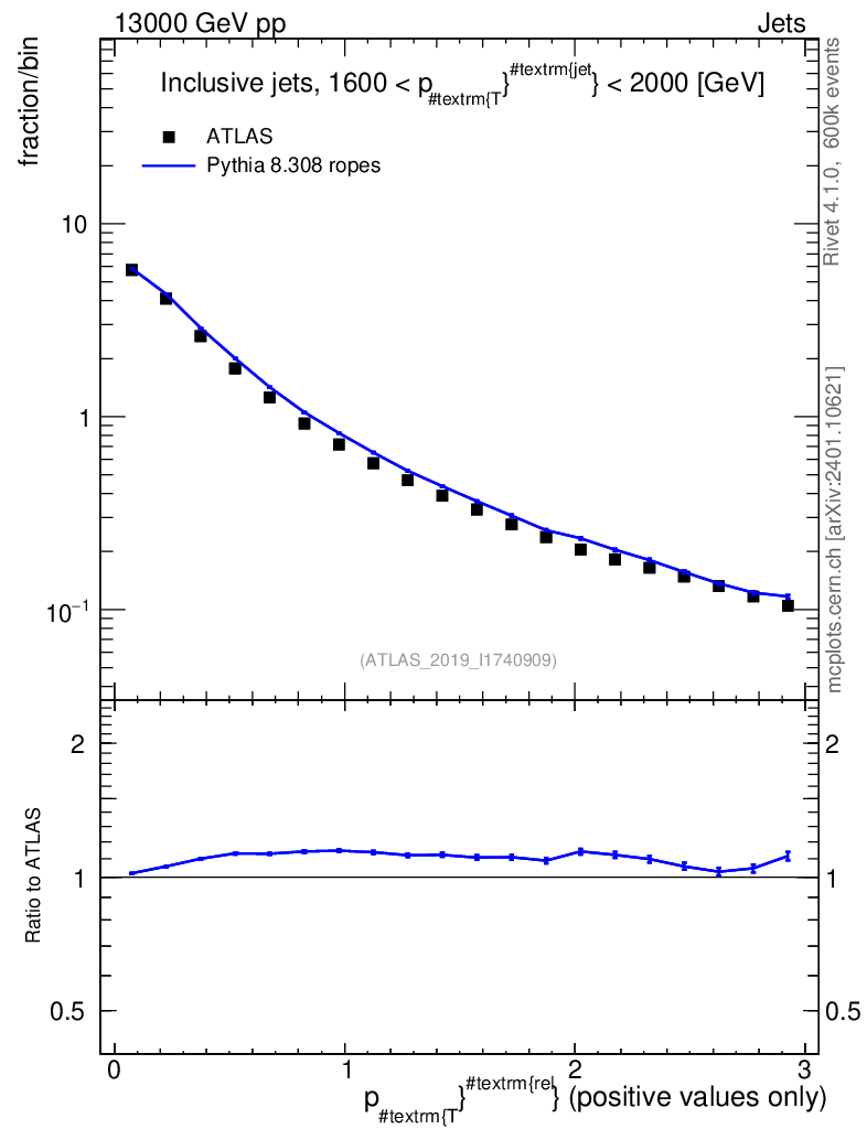 Lines: data, pythia8 8.308 ropes |