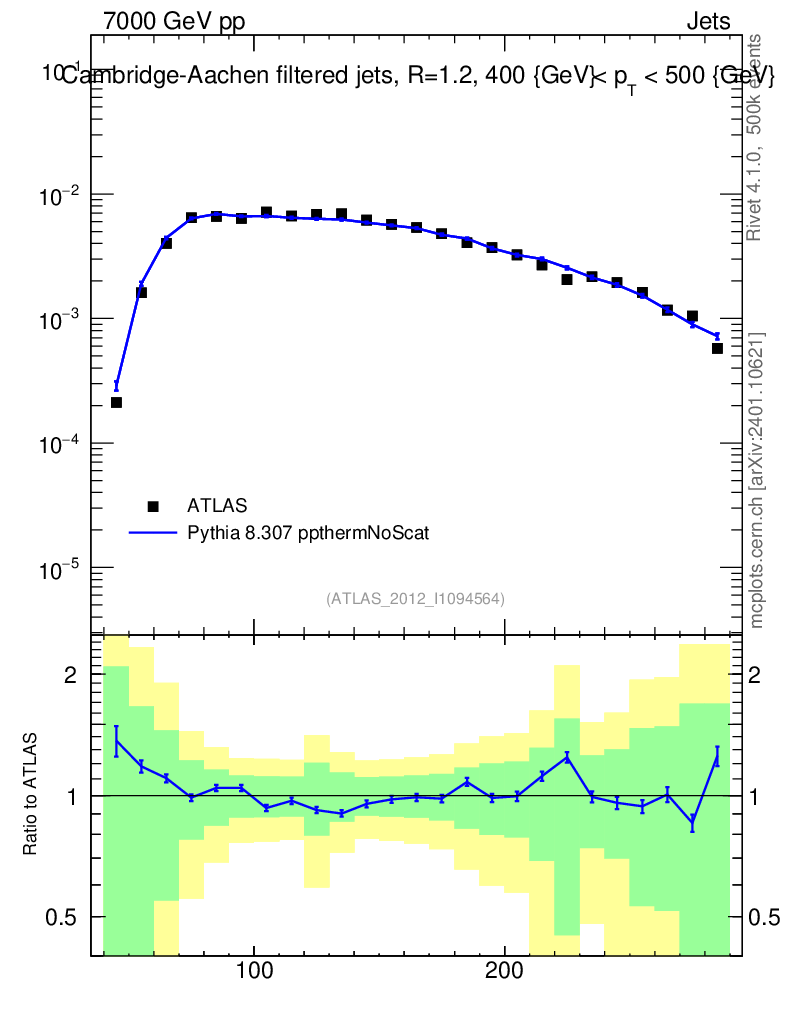 Lines: data, pythia8 8.307 ppthermNoScat |