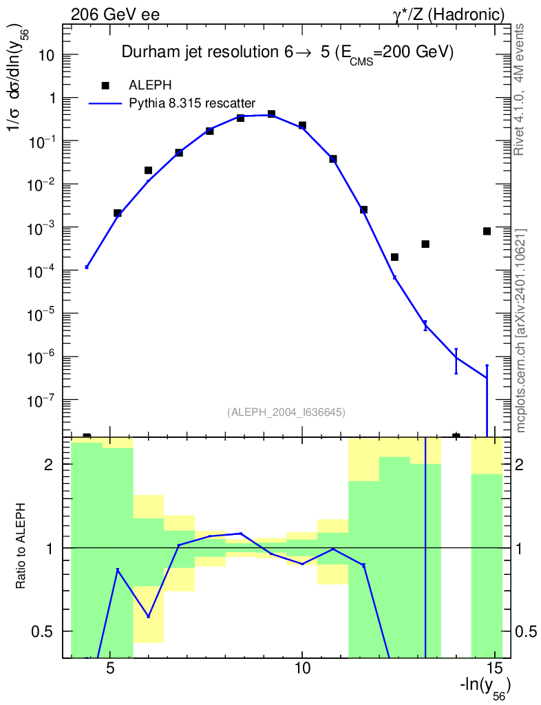 Lines: data, pythia8 8.315 rescatter |