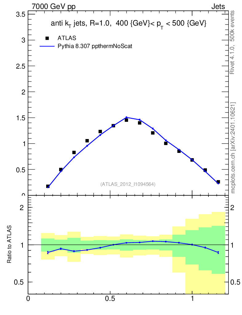 Lines: data, pythia8 8.307 ppthermNoScat |