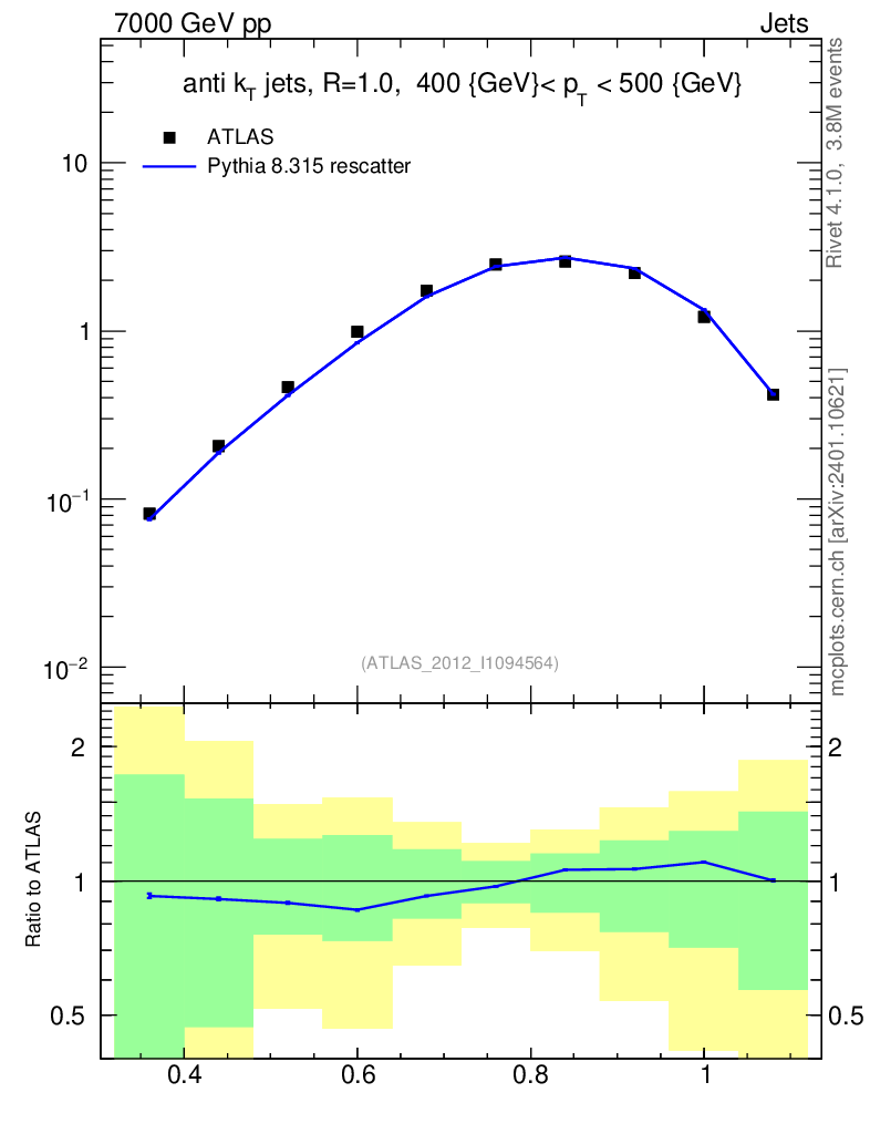 Lines: data, pythia8 8.315 rescatter |