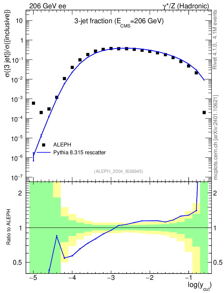 Lines: data, pythia8 8.315 rescatter |