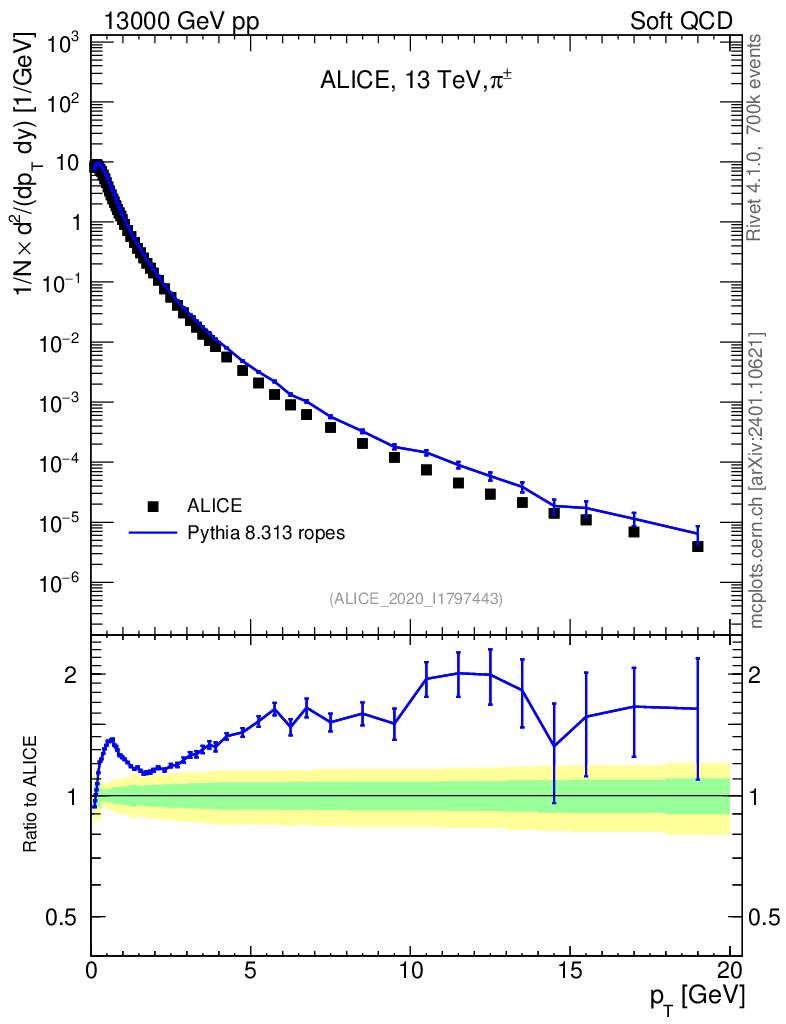 Lines: data, pythia8 8.313 ropes |