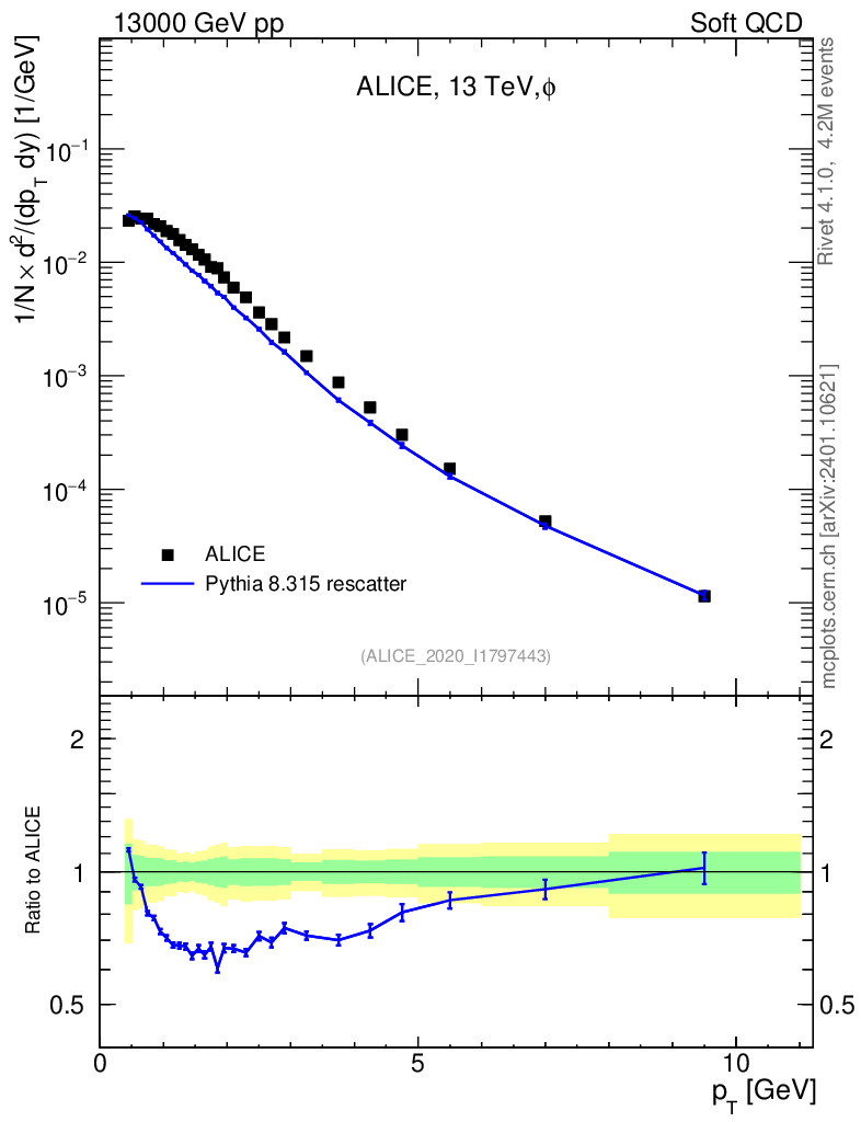 Lines: data, pythia8 8.315 rescatter |
