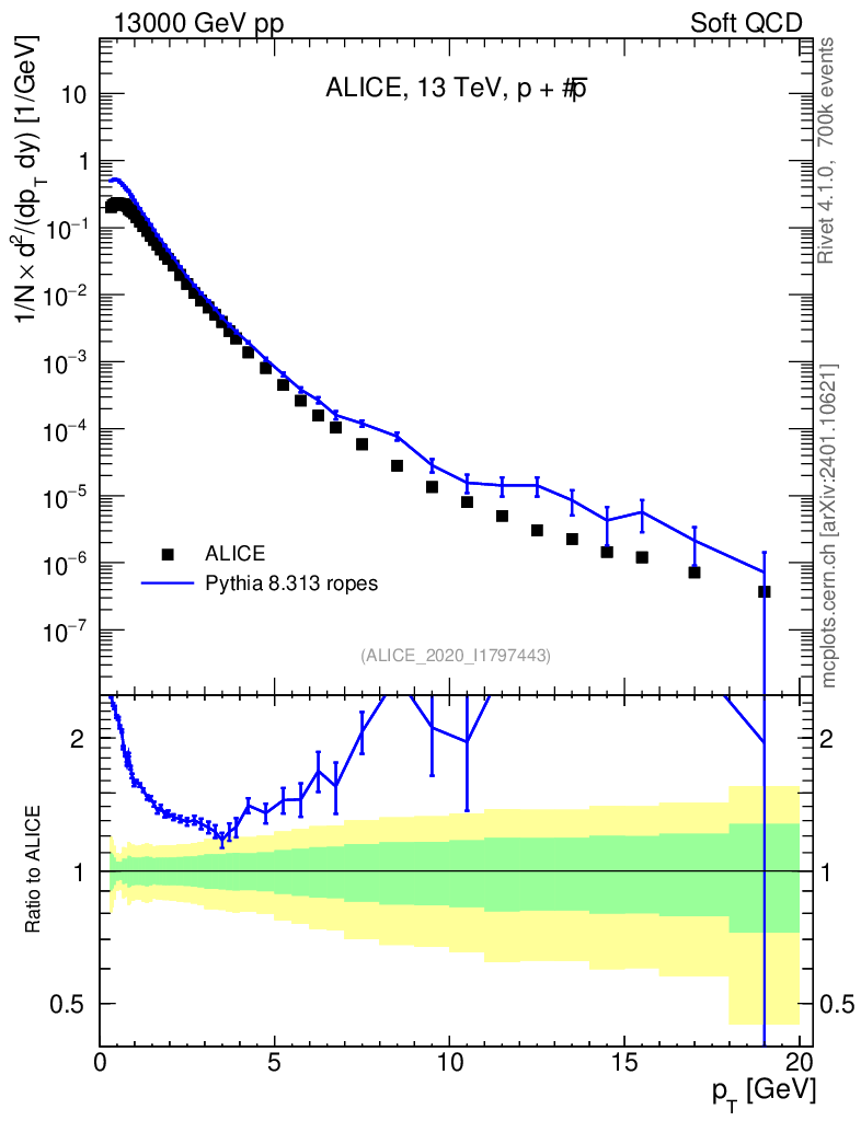 Lines: data, pythia8 8.313 ropes |