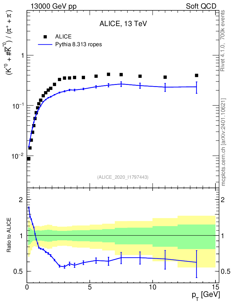 Lines: data, pythia8 8.313 ropes |