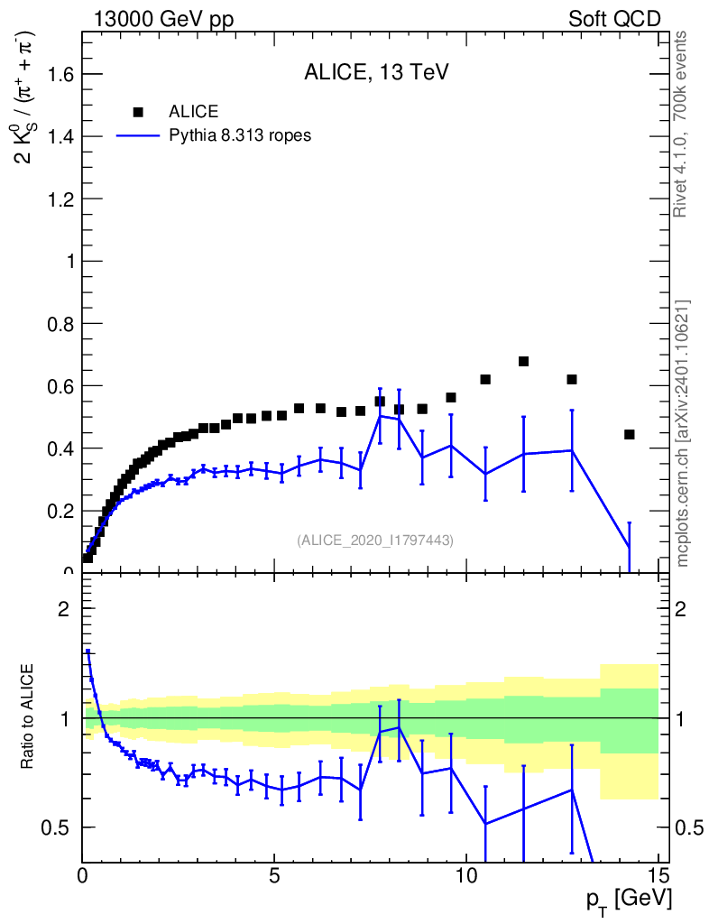 Lines: data, pythia8 8.313 ropes |