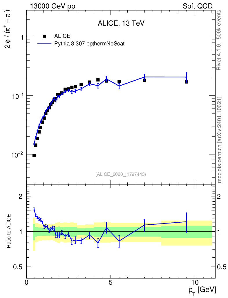 Lines: data, pythia8 8.307 ppthermNoScat |