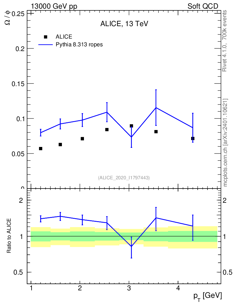 Lines: data, pythia8 8.313 ropes |