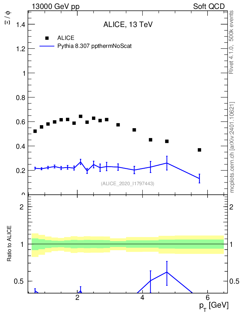 Lines: data, pythia8 8.307 ppthermNoScat |