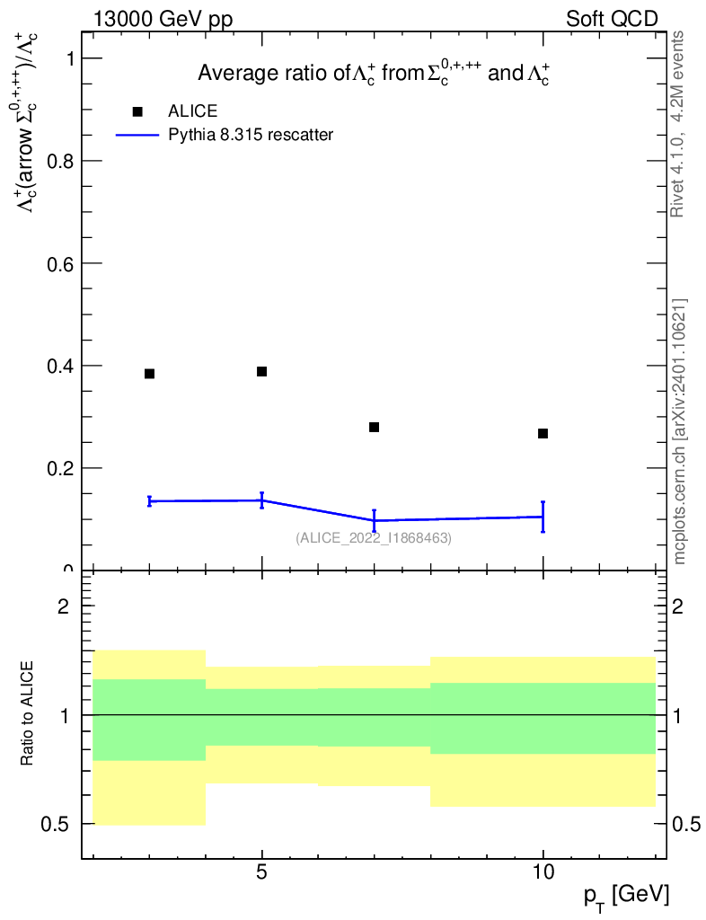 Lines: data, pythia8 8.315 rescatter |