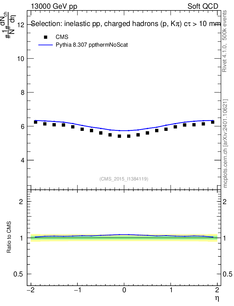 Lines: data, pythia8 8.307 ppthermNoScat |