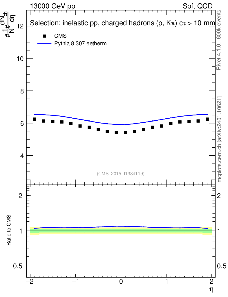 Lines: data, pythia8 8.307 eetherm |